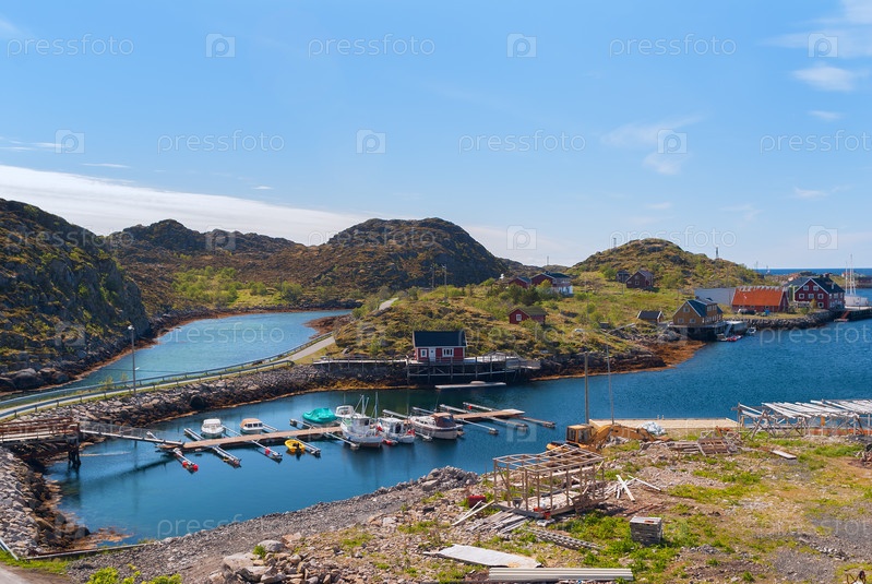 Деревня на норвежском острове между Скрувой в Солнечный день