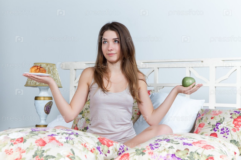 Утром и завтрак молодая красивая девушка