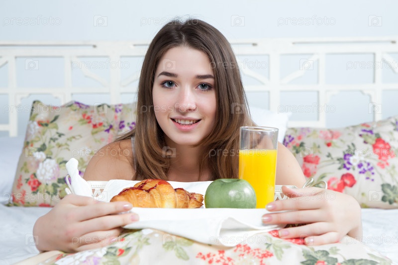 Утром и завтрак молодая красивая девушка