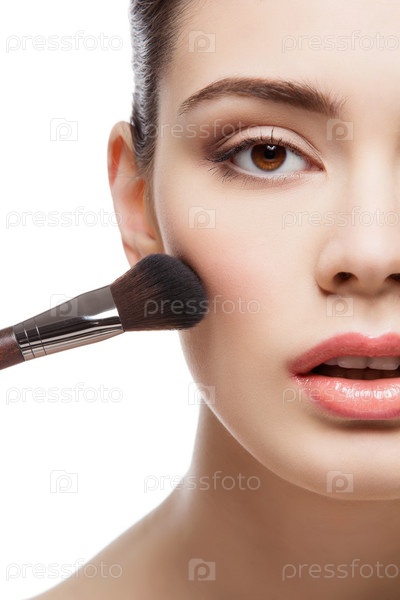 Красивая девушка, применяя румяна
