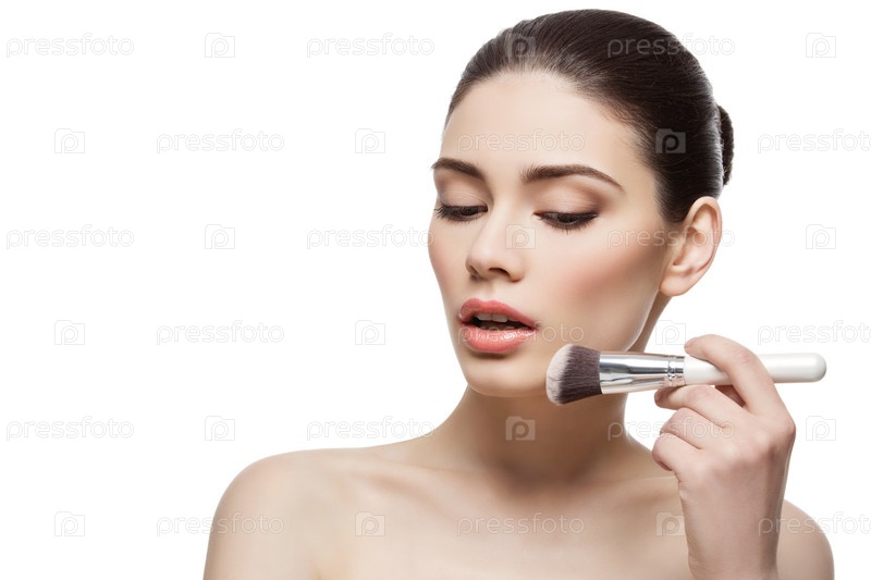Красивая девушка, применяя пудру