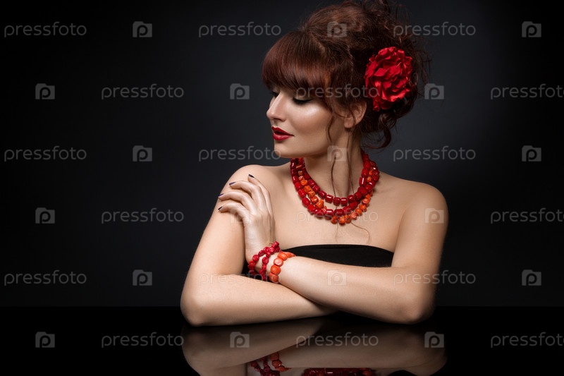 Девушка в красном колье и браслетах