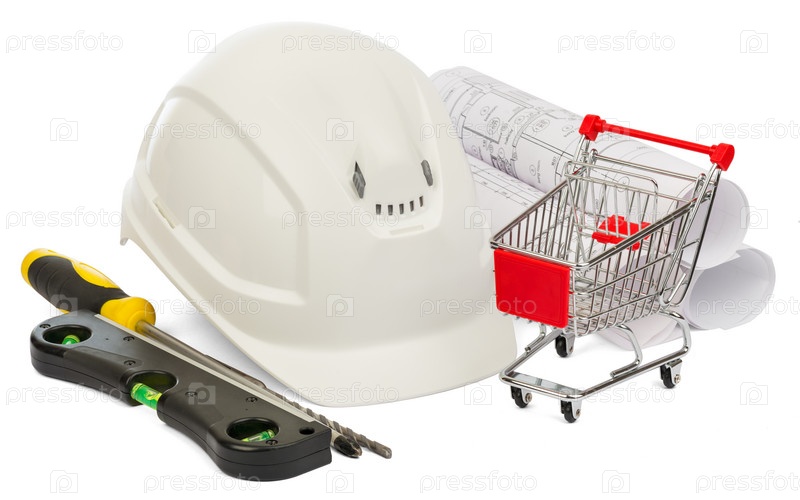 Каска строительная и корзина