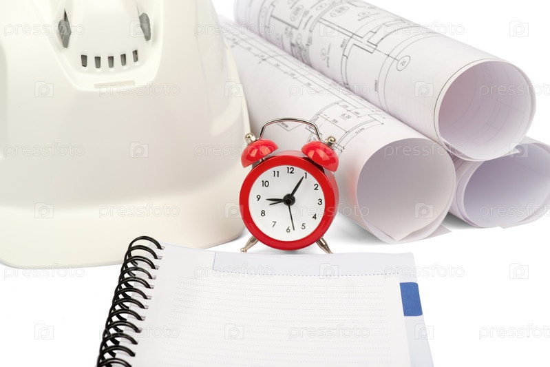 План строительства и шлем с будильником