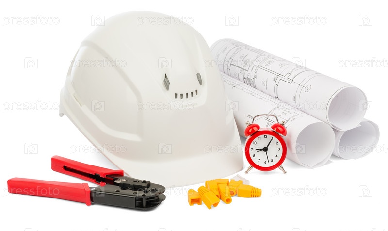 План строительства и шлем с инструментами