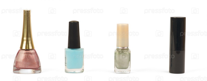 Бутылки Лак для ногтей и помады над белой