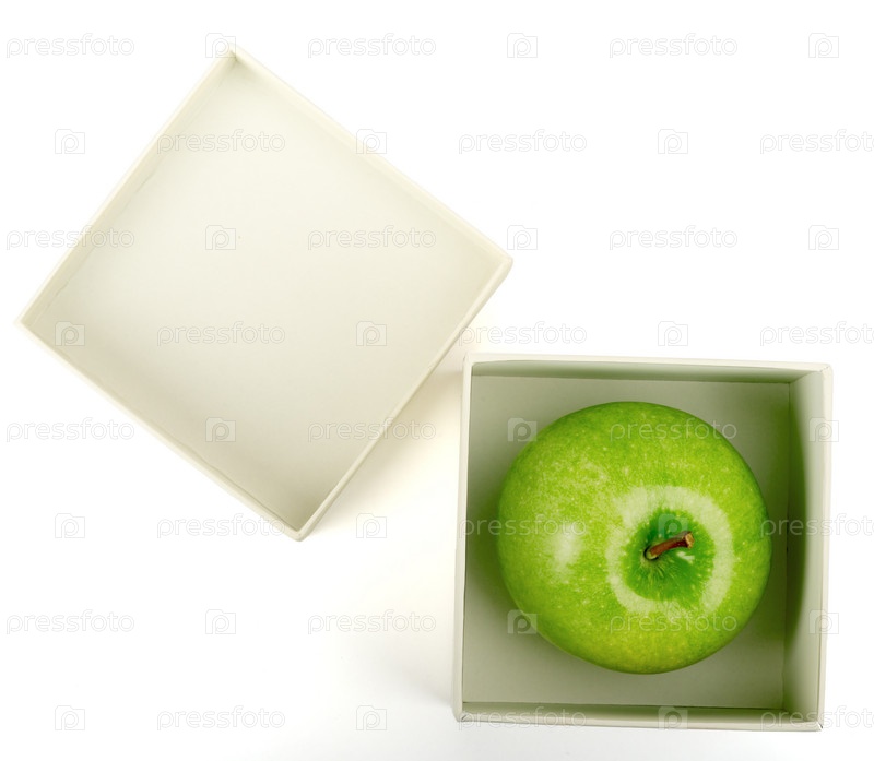 Яблоко в белой коробке