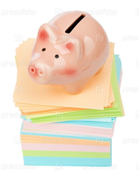 Свинка-копилка на куче наклеек
