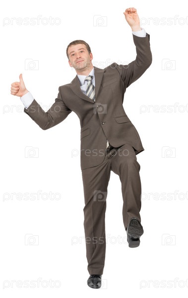 Бизнесмен, стоя на одной ноге