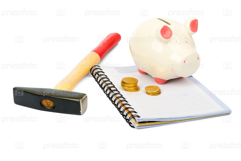 Копилка, молоток и блокнот
