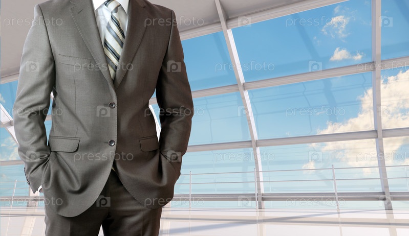 Бизнесмен, стоя у окна