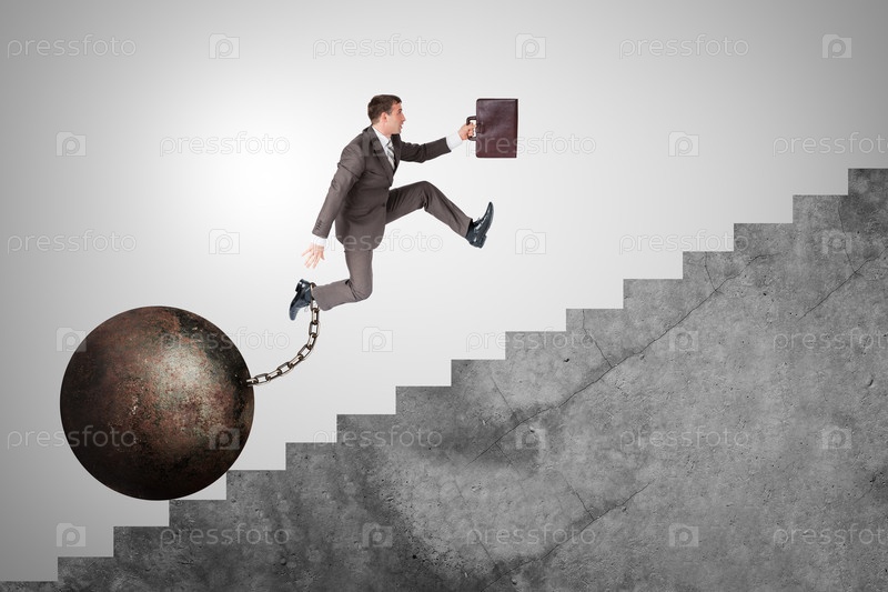 Изображение уверен бизнесмен с чемодан и железа балласта