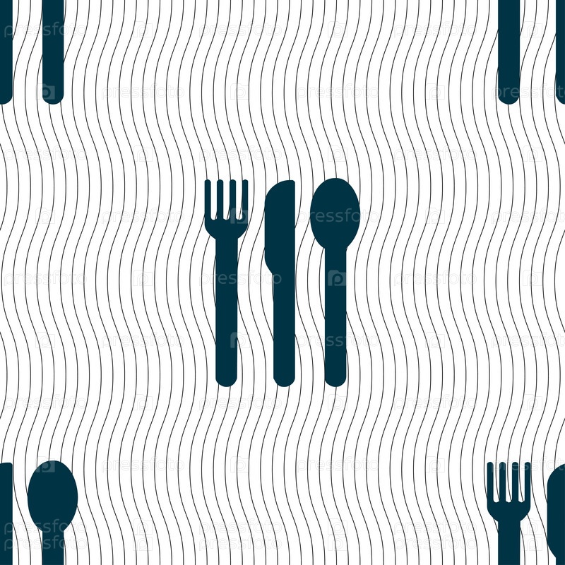 Вилка, нож, ложка значок знак. Бесшовный фон с геометрической текстурой