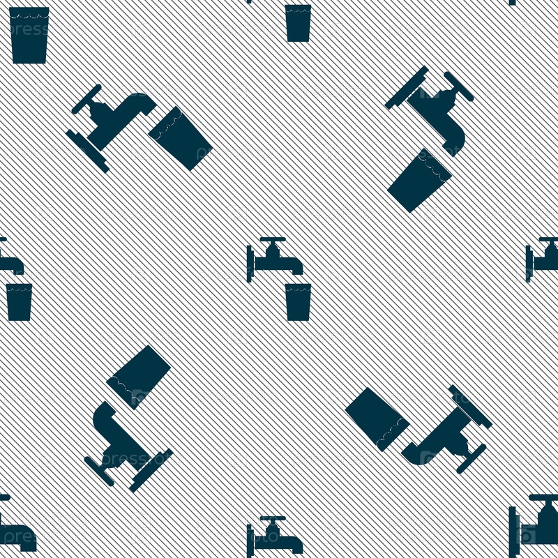 Кран, стекла, вода значок знак. Бесшовный фон с геометрической текстурой