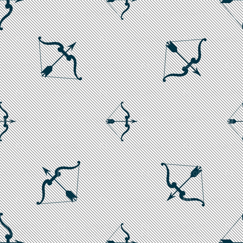Лук и стрелы значок знак. Бесшовный фон с геометрической текстурой