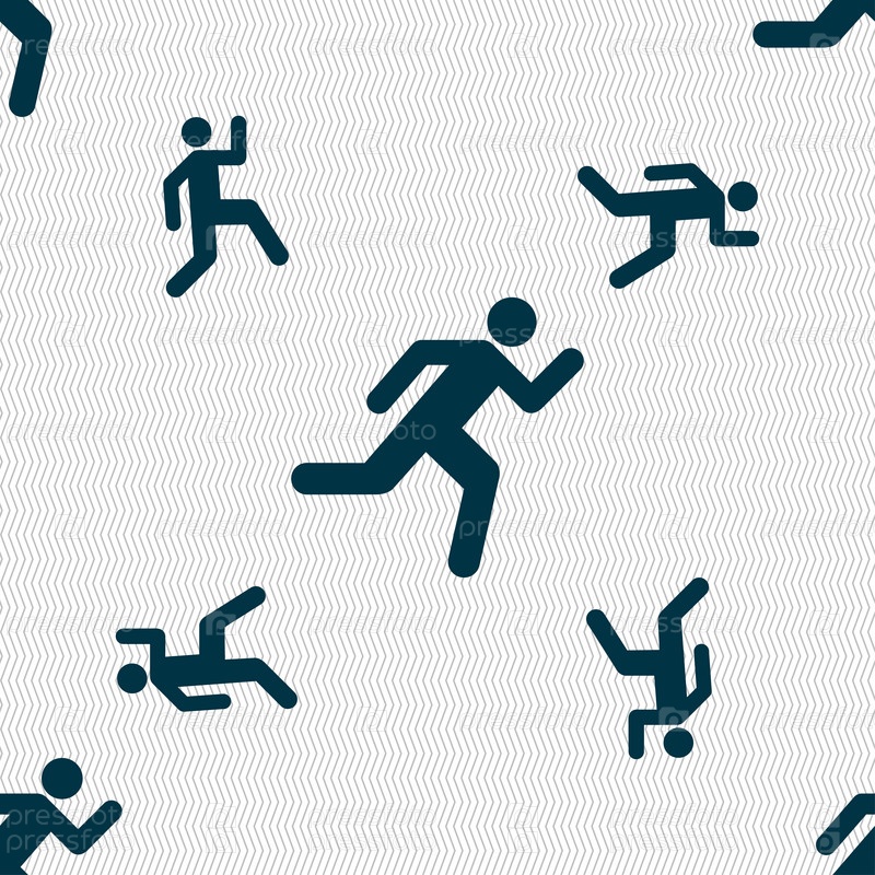 Бегущий человек значок знак. Бесшовный фон с геометрической текстурой