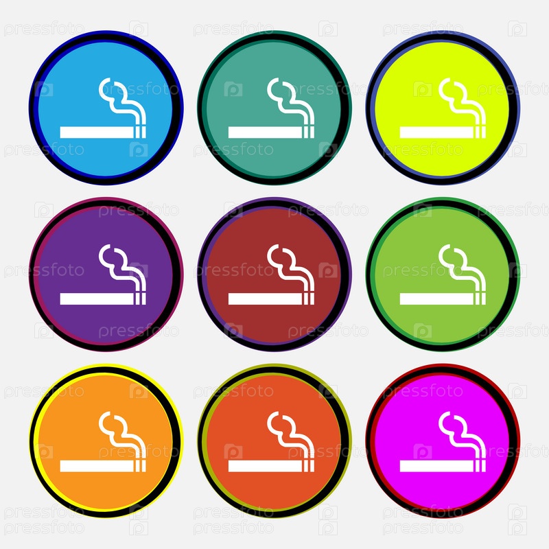 Сигаретный дым значок знак. Девять цветные круглой кнопки