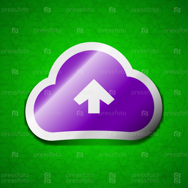 Загрузите с облако значок знак. Символ шик Цветные наклейки на зеленом фоне