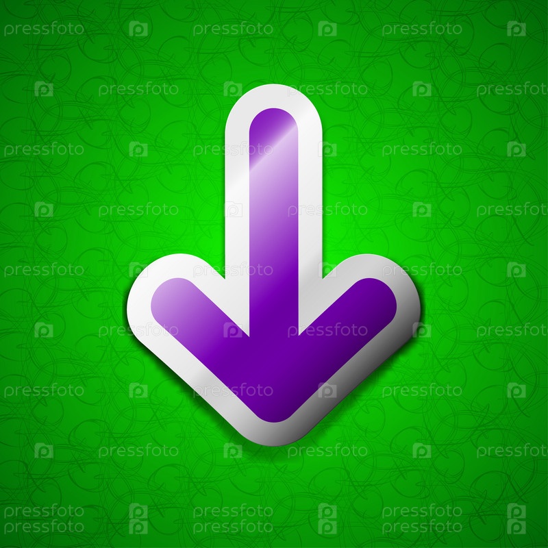 Стрелка вниз, скачать, загрузки, знак значок резервного копирования. Символ шик Цветные наклейки на зеленом фоне