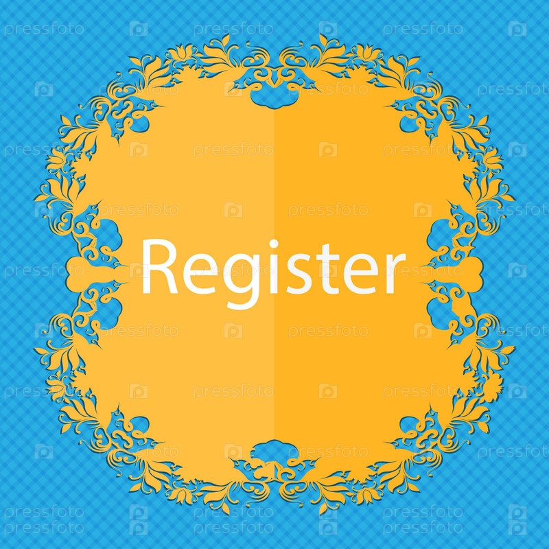 Зарегистрируйте знак значок. Символ членства. Навигация по сайту. Цветочный дизайн квартиры на синий абстрактный фон с местом для текста