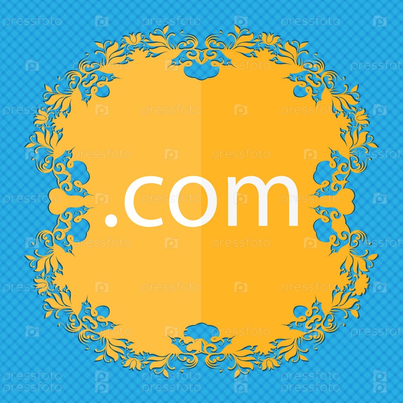 Символ домена верхнего уровня Интернета Цветочный дизайн квартиры на синем абстрактном фоне с местом для текста