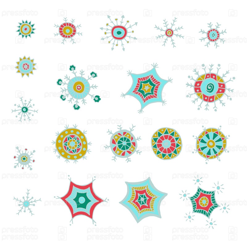 Рисованной красочных снежинки рисунков