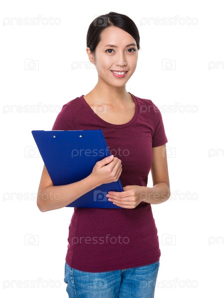 Красивая девушка с папкой-планшетом