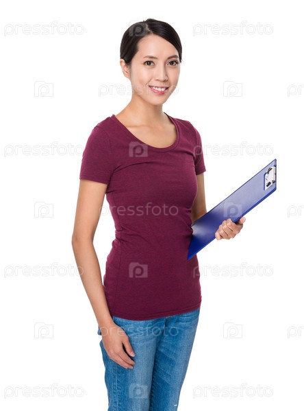 Красивая девушка с папкой-планшетом