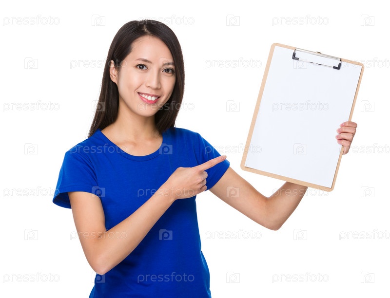 Молодая женщина с папкой-планшетом