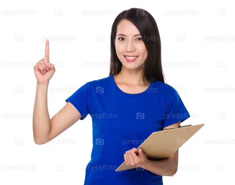 Молодая женщина с папкой-планшетом