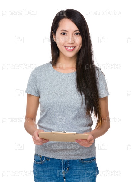 Молодая женщина с папкой-планшетом