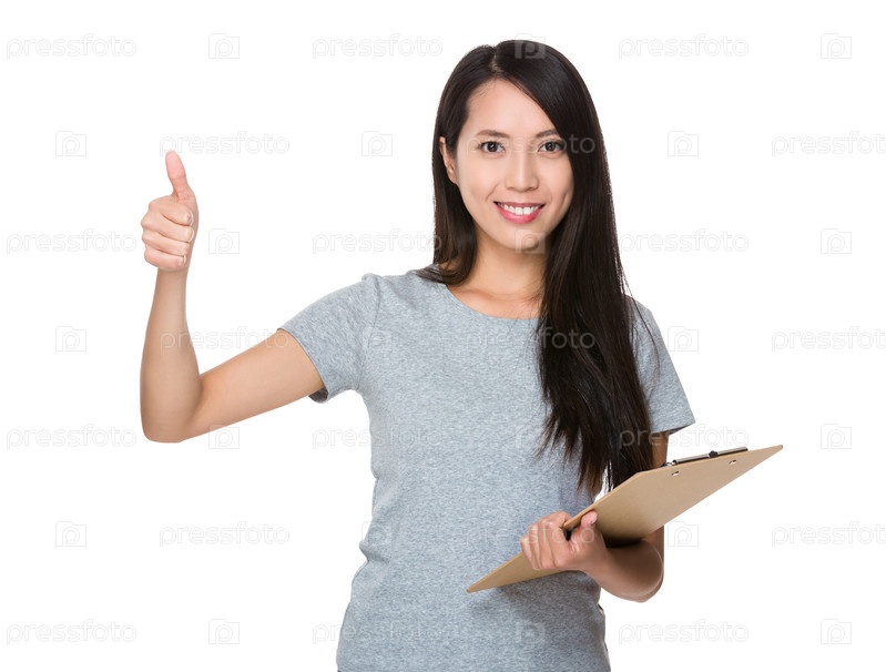 Молодая женщина с папкой-планшетом