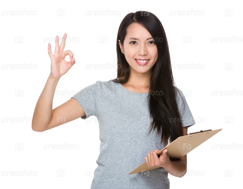 Молодая женщина с папкой-планшетом