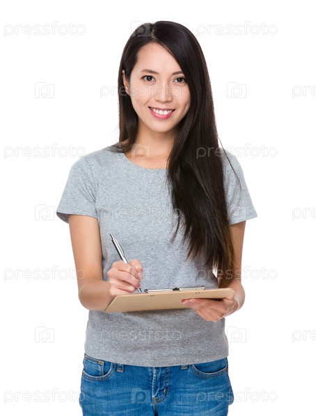 Молодая женщина с папкой-планшетом