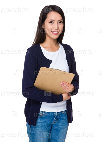 Молодая женщина с папкой-планшетом