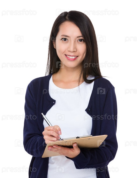 Молодая женщина с папкой-планшетом