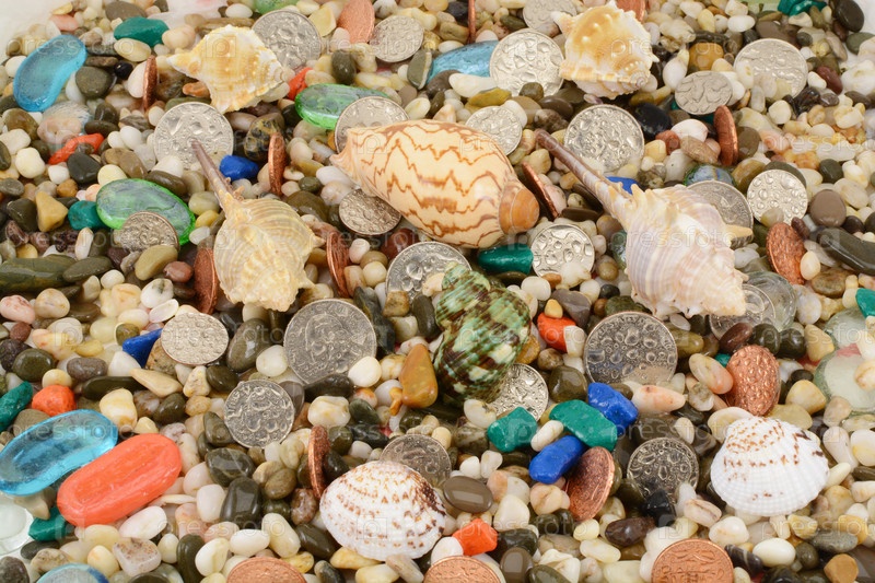Ракушки, камни и монеты