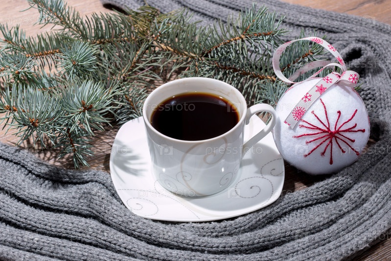 Зимняя чашка горячего кофе и теплый шарф