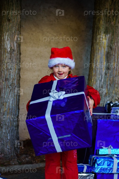 Маленькая девочка в красной шляпе Санты