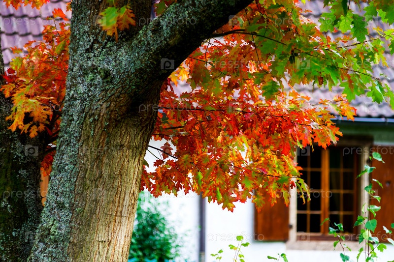Красивые красочные листья дуба