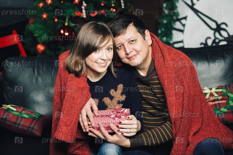 Счастливая пара встречает Рождество