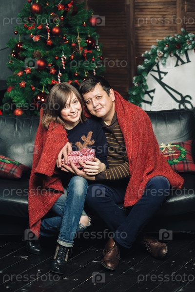 Счастливая пара встречает Рождество