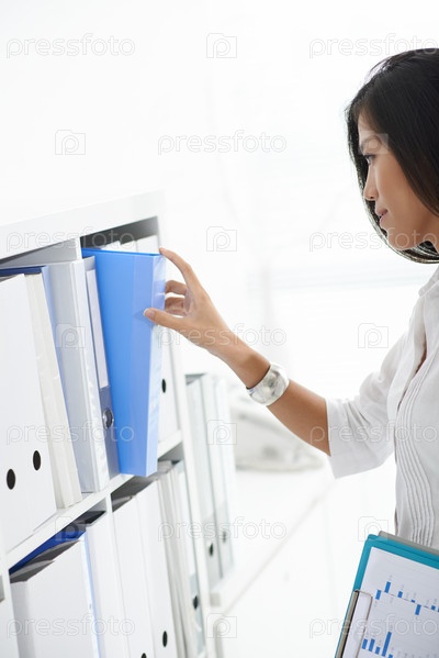 Девушка достает папку