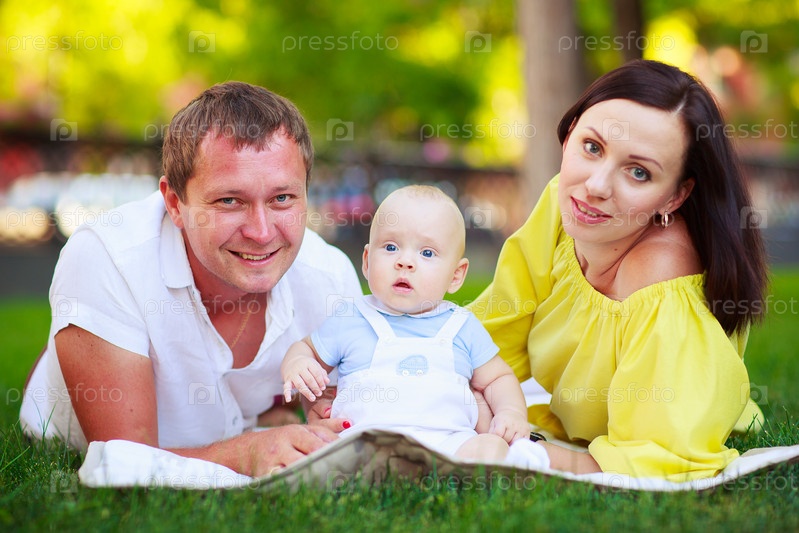 Счастливая семья в парке