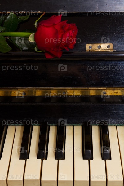 Красная роза на фортепиано
