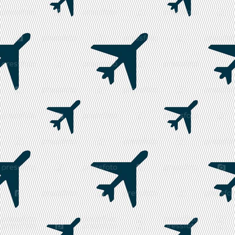 Самолет значок знак. Бесшовный фон с геометрической текстурой