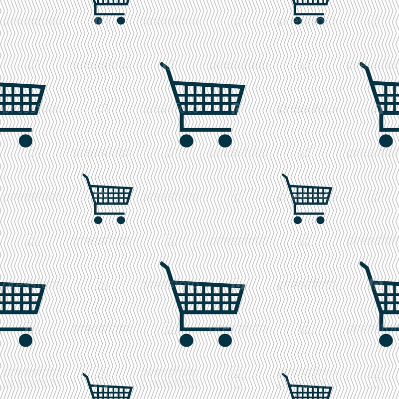 Торговый знак значок Корзина. Бесшовный фон с геометрической текстурой