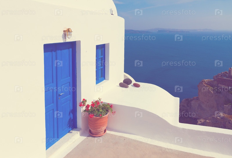 Красивые детали острова Санторини, Греция