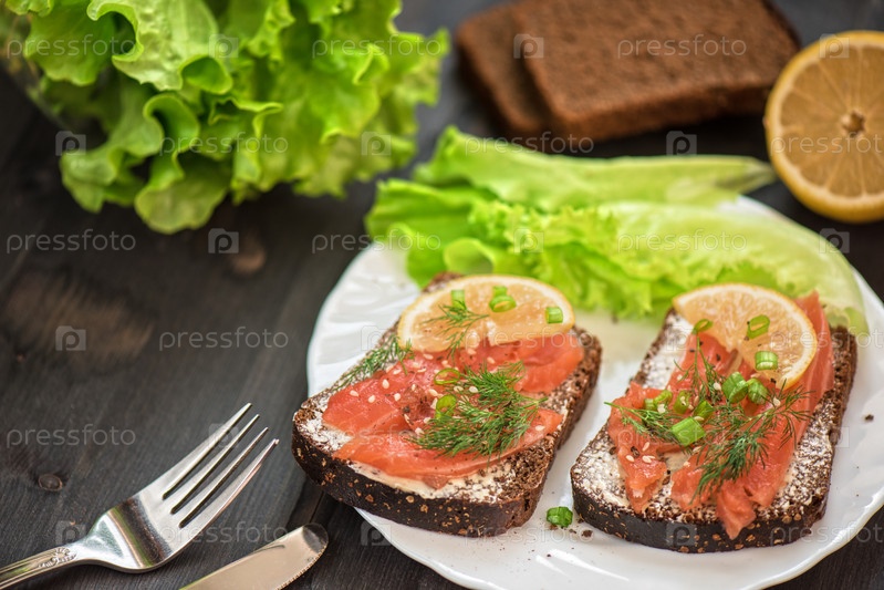Бутерброд с лососем на завтрак