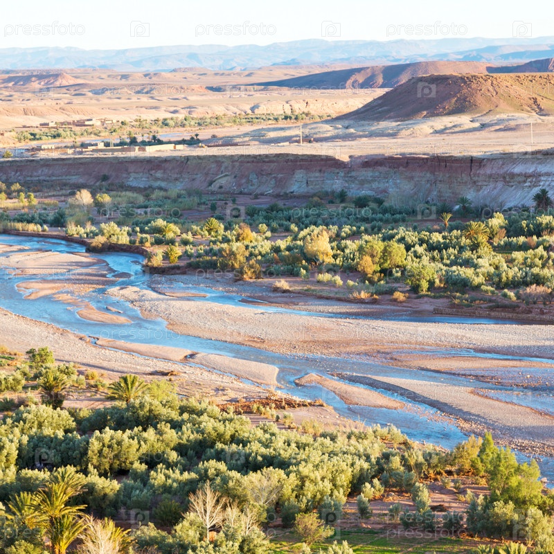 Закат в Африке старой постройки рядом с рекой